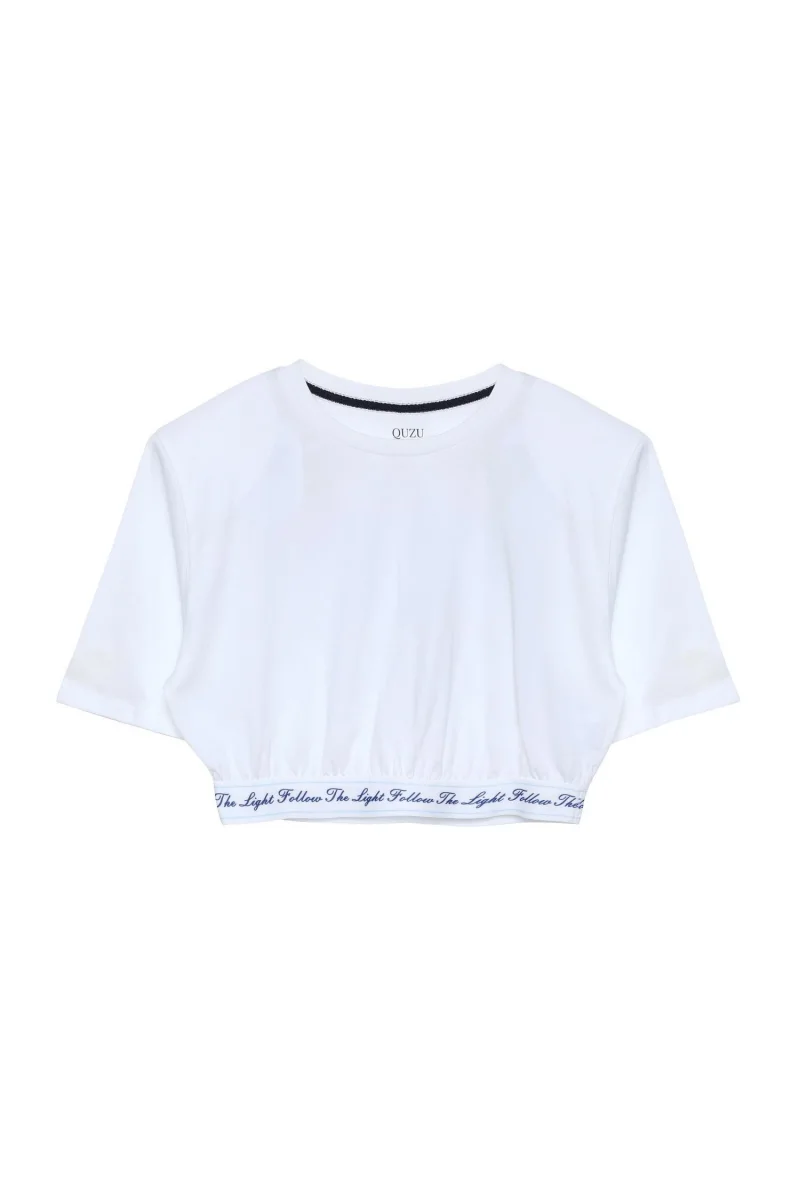 Beli Lastik Detaylı Kısa Kol Tişört Ekru