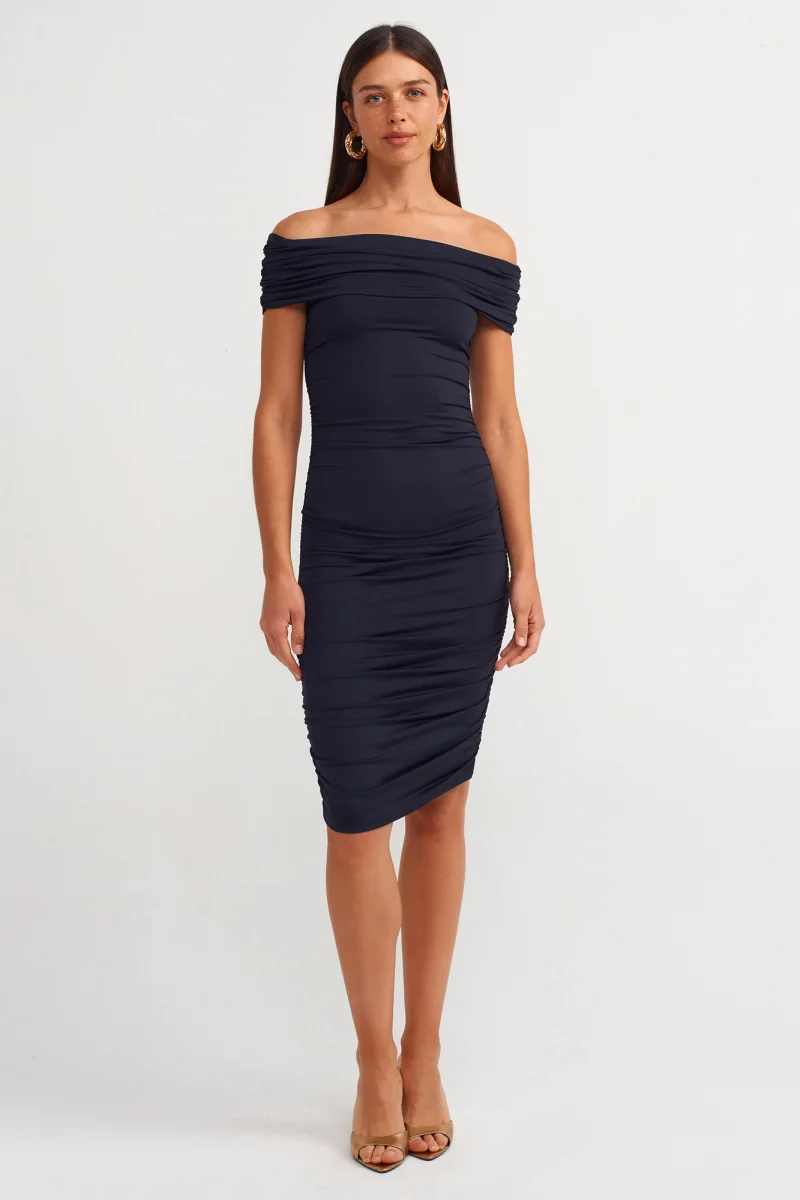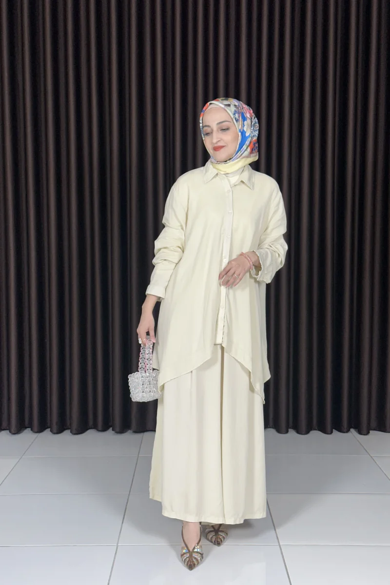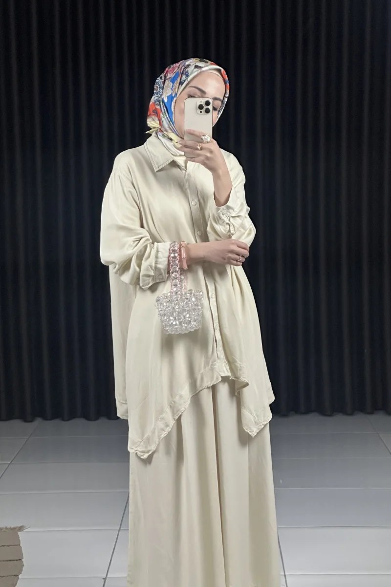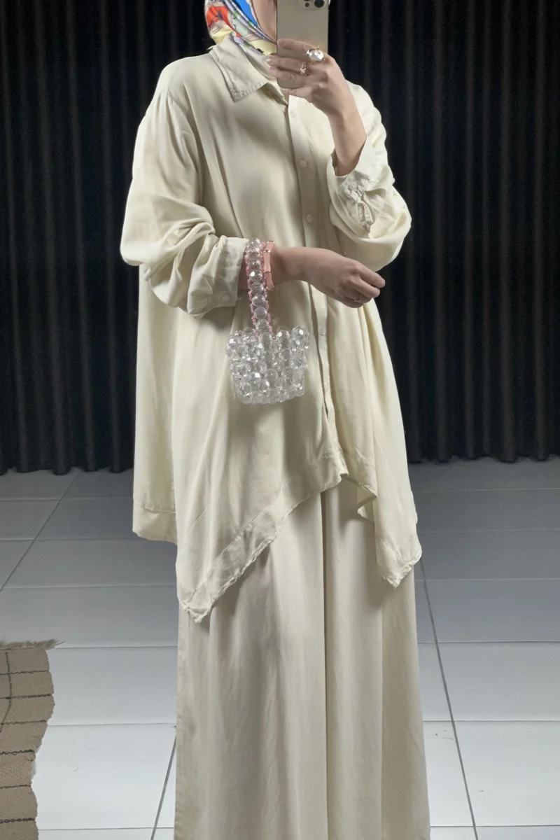 Tek Omuzlu Toka Detaylı Elbise Ekru