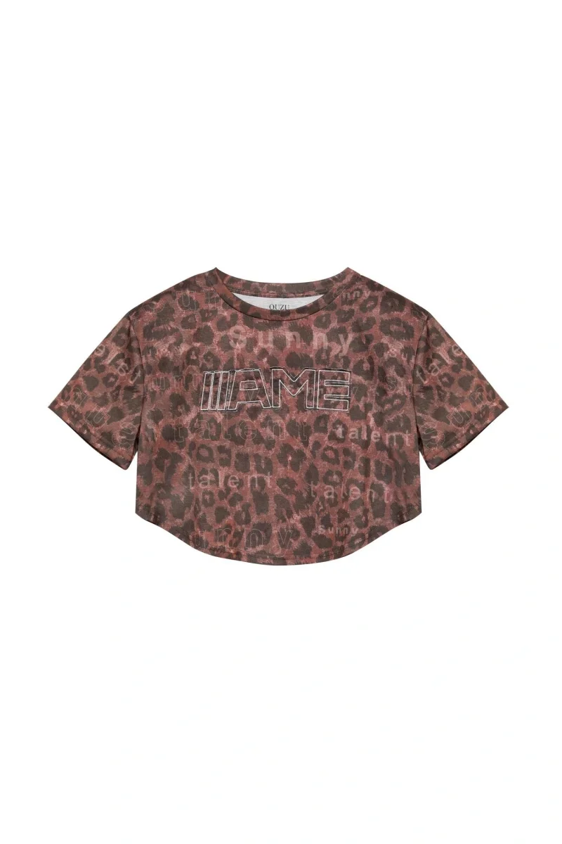 Nakış Detaylı Leopar Desenli T-shirt Kahve