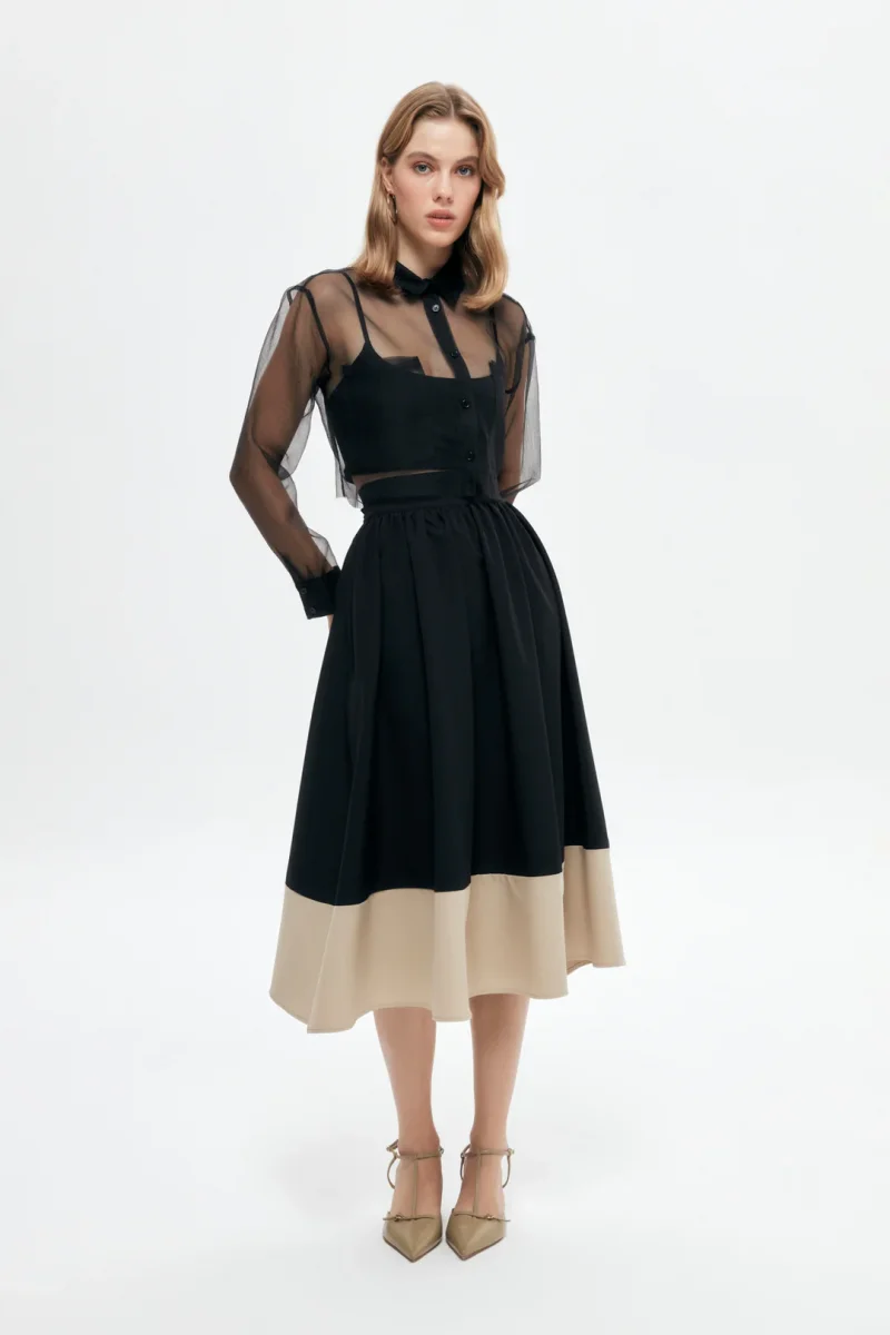 Kumaş Match Detaylı Volanlı Mini Etek Koyu Gri