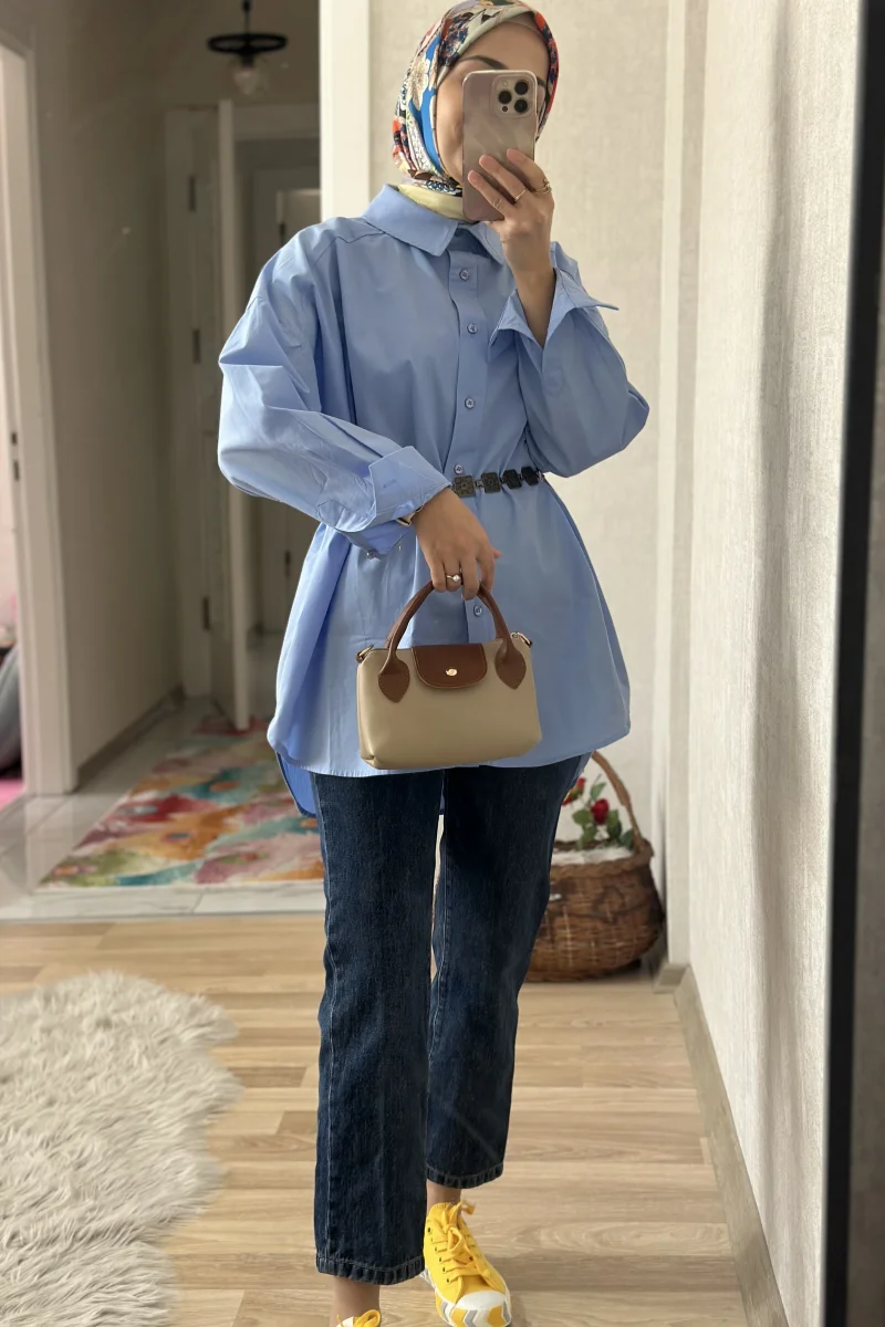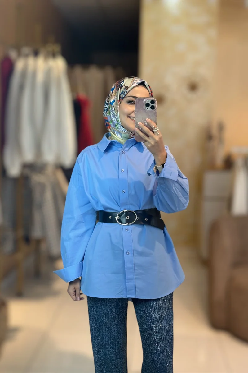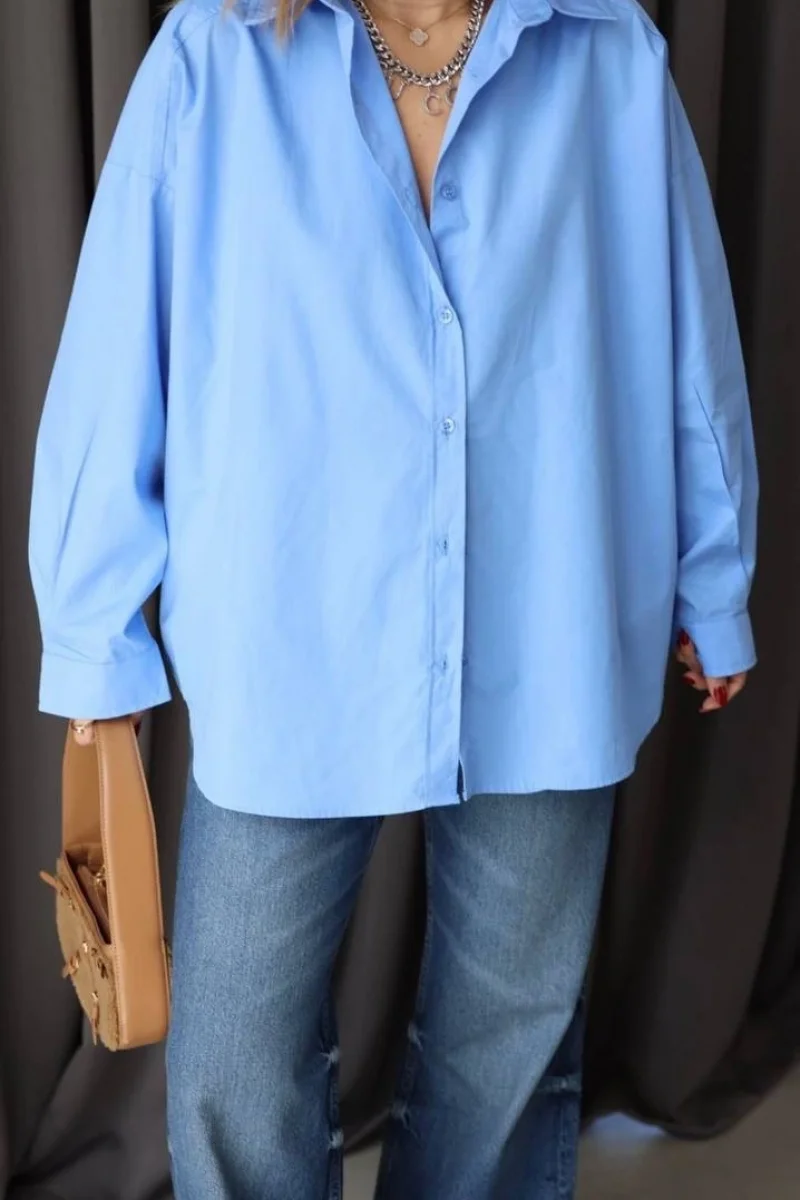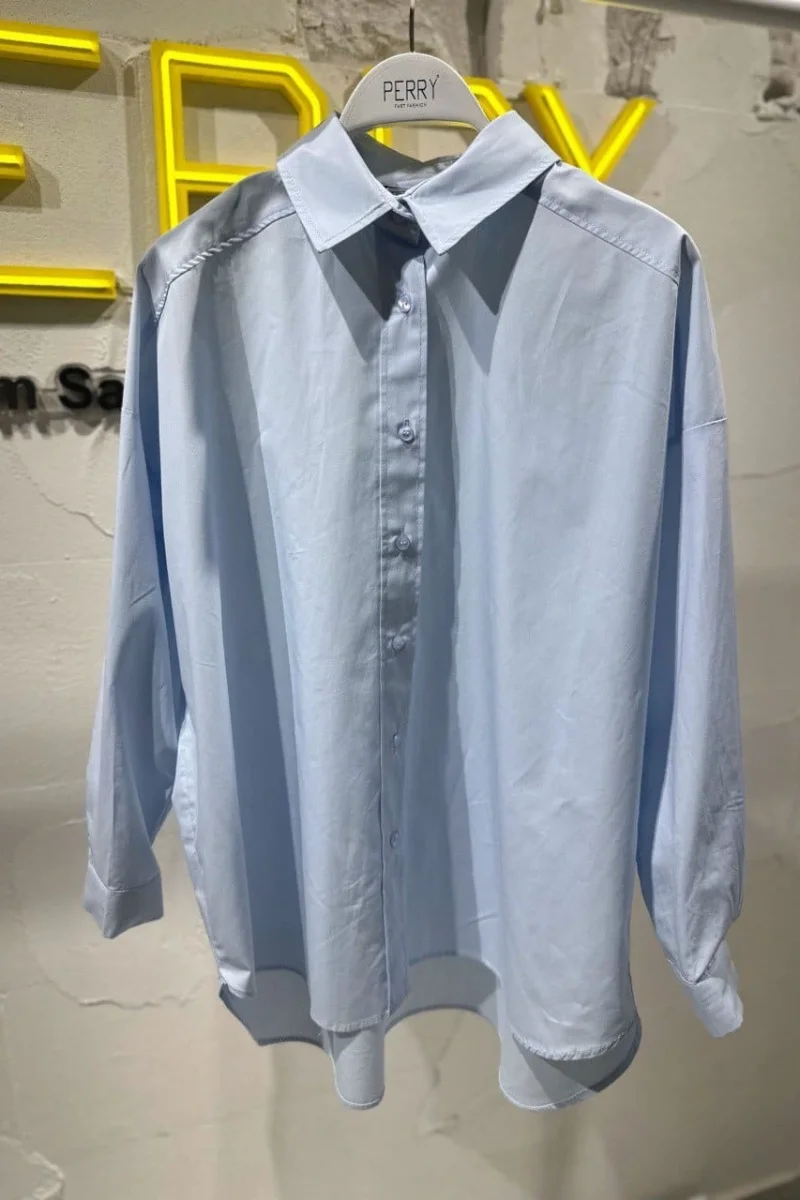 Oversize Mavi Poplin Gömlek