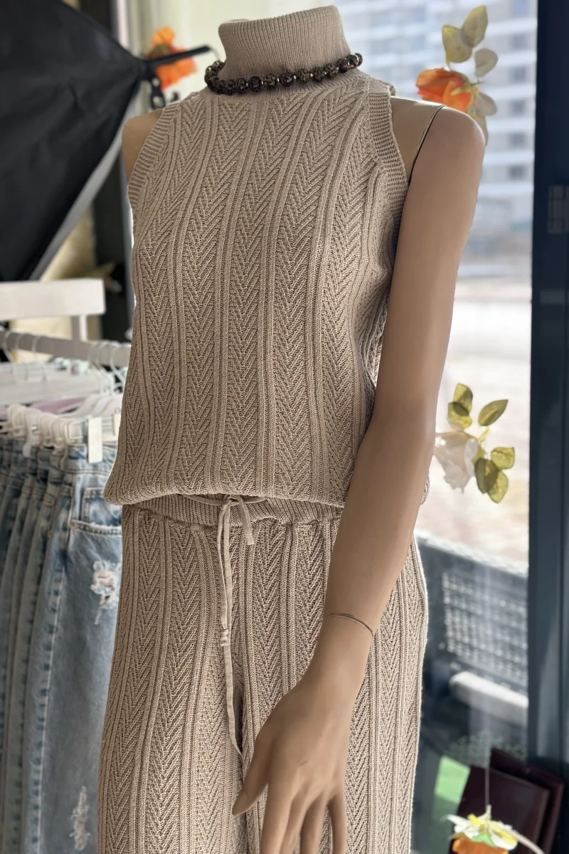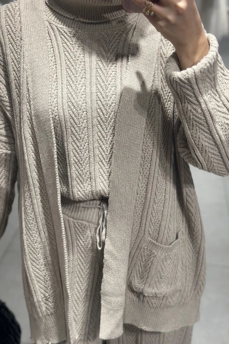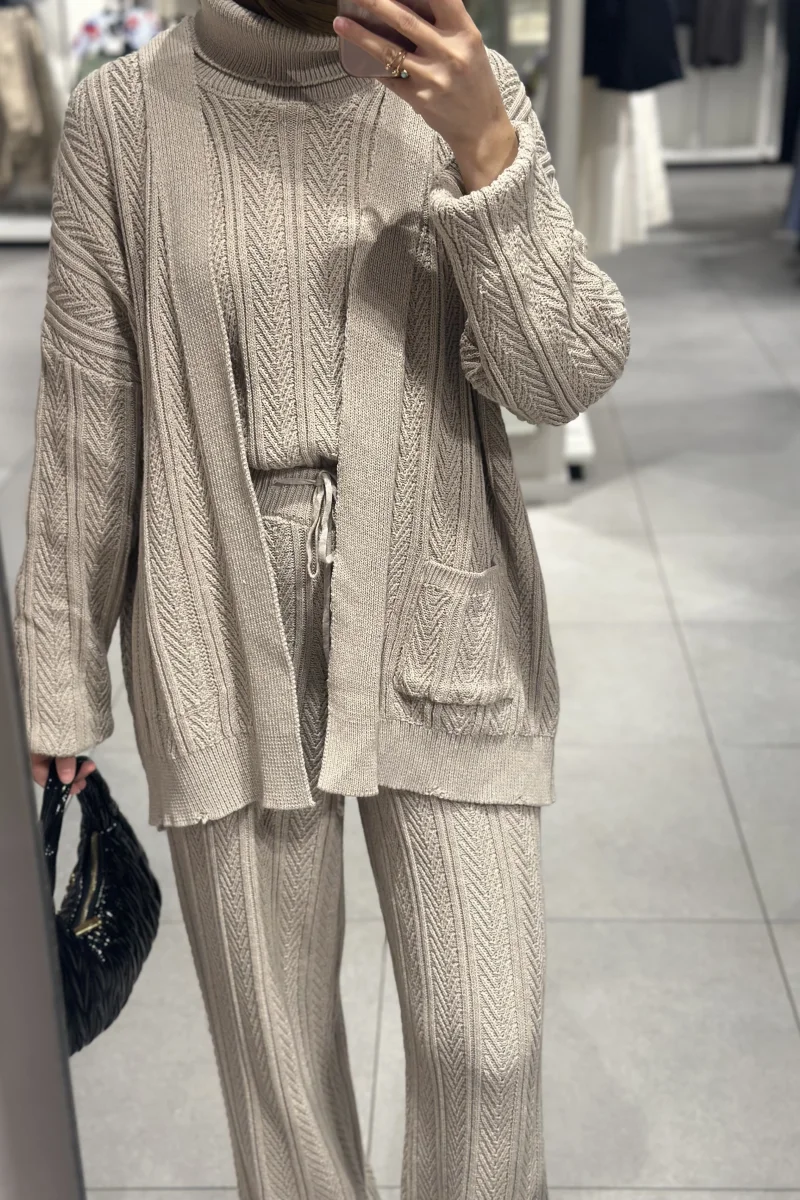 Üçlü Triko Takım Kahverengi