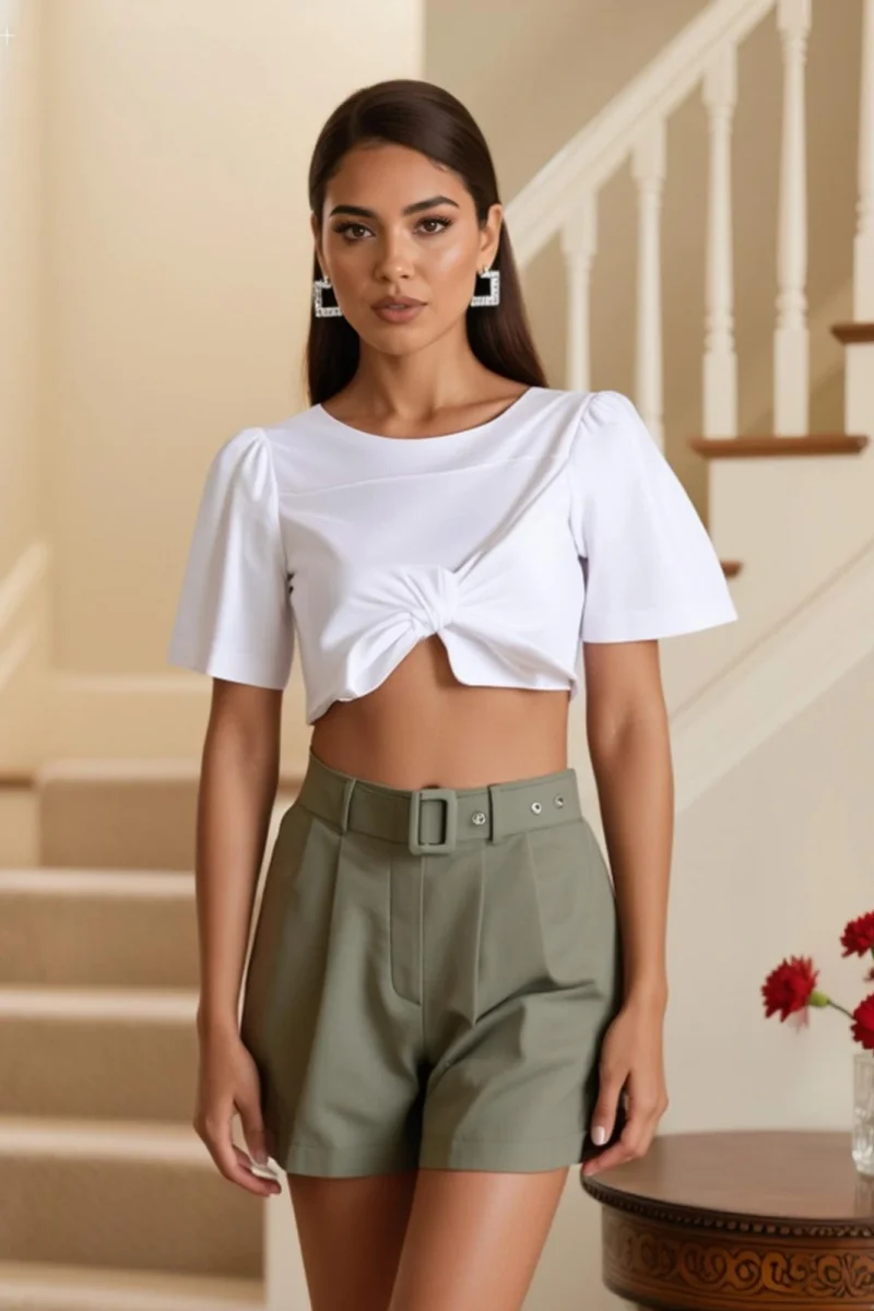 Kemerli Deri Şort