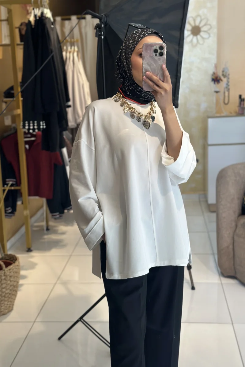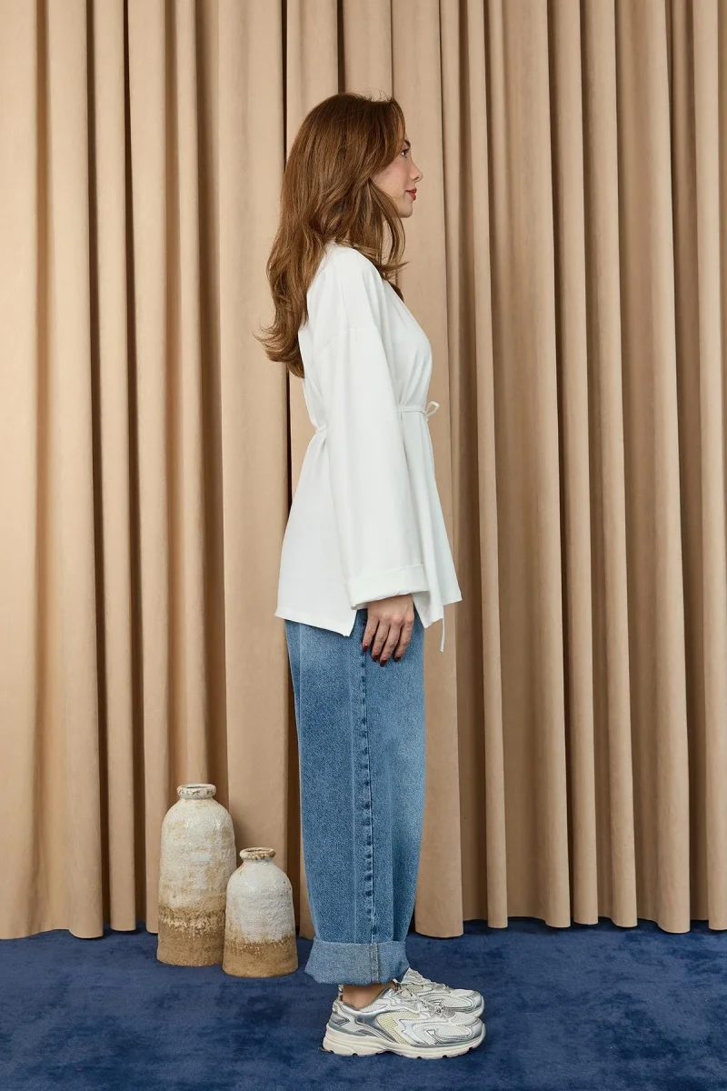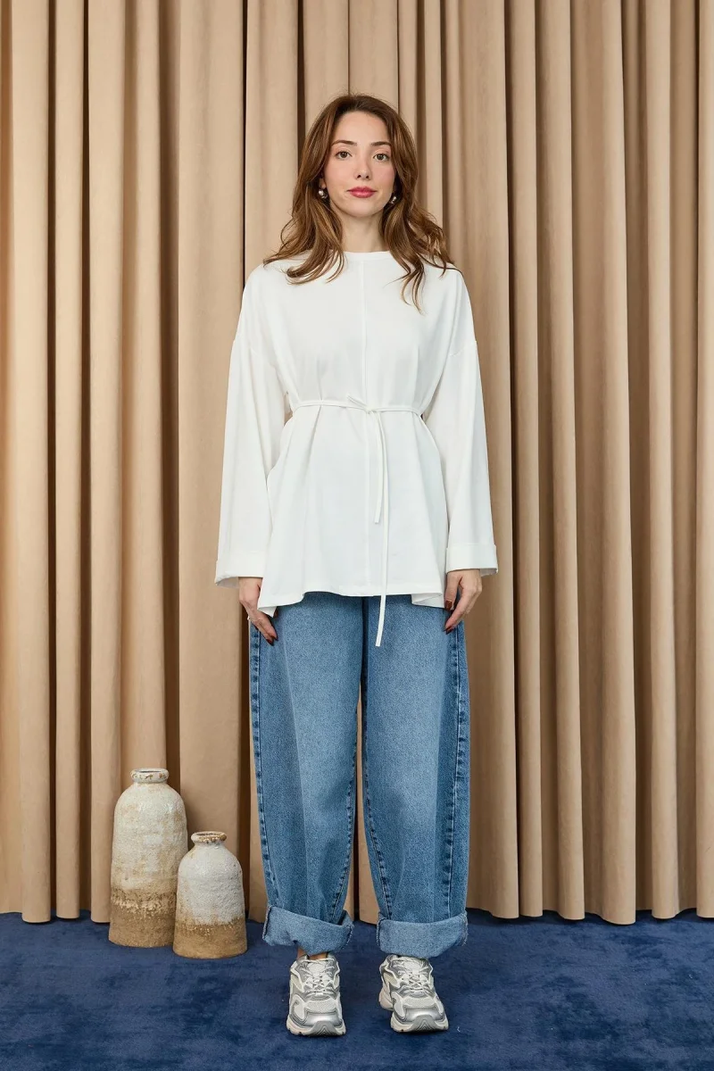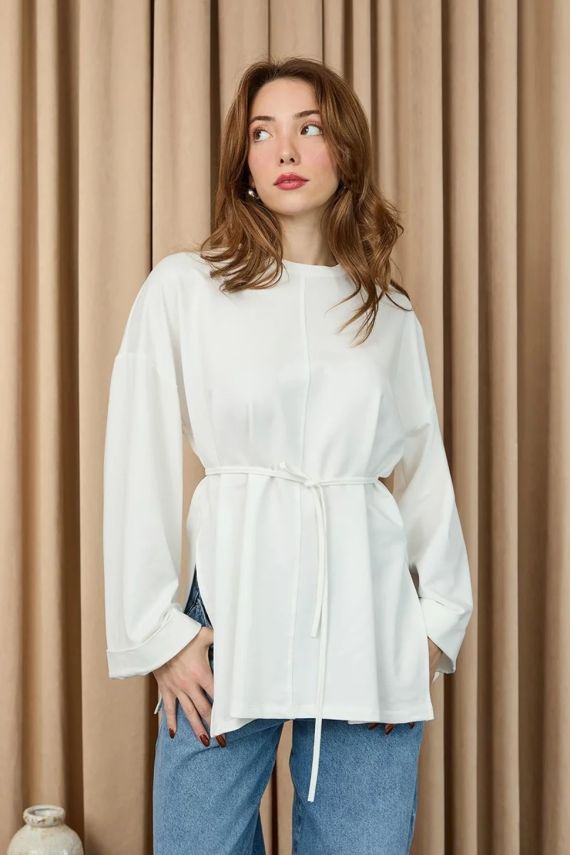 Kadın Düşük Omuz Detaylı Bağlama Aksesuarlı Bluz