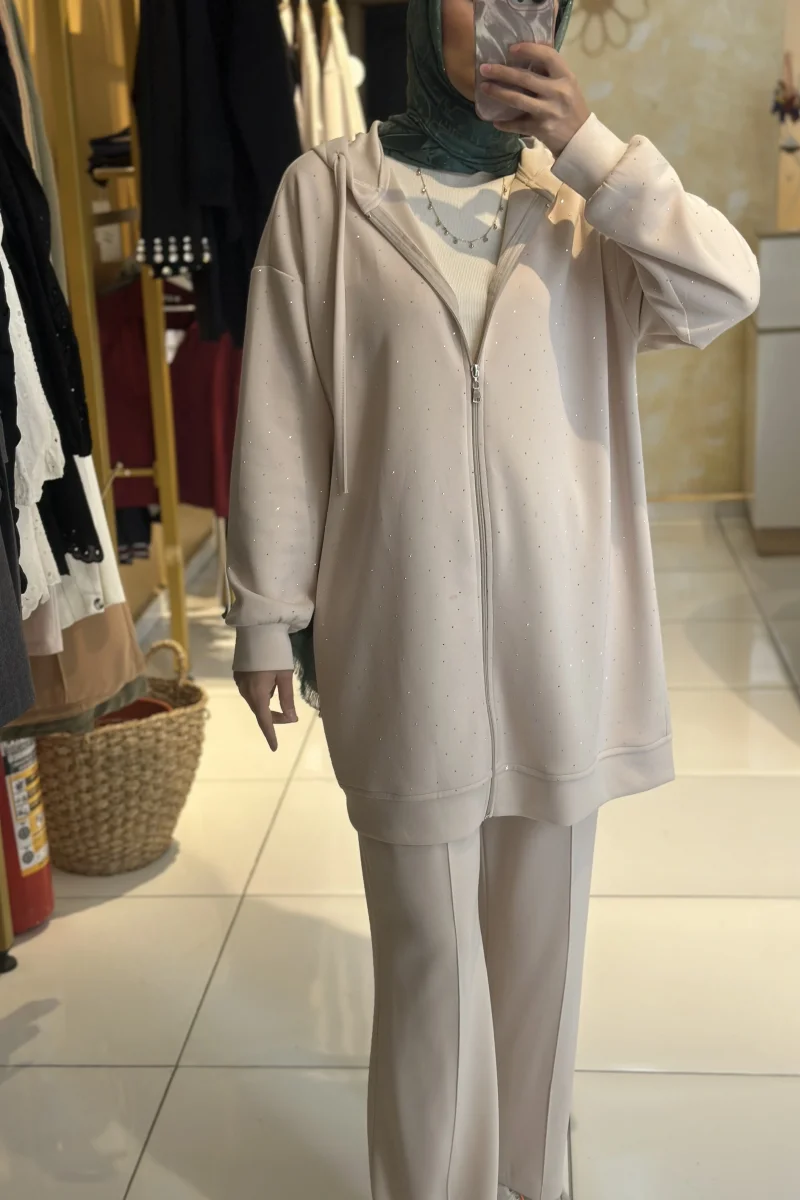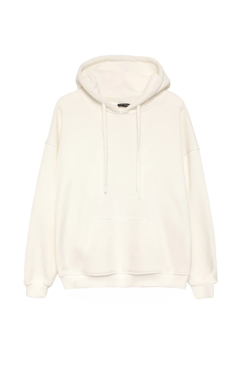 Sırtı Baskılı Kanguru Cepli Kapüşonlu Sweatshirt Siyah