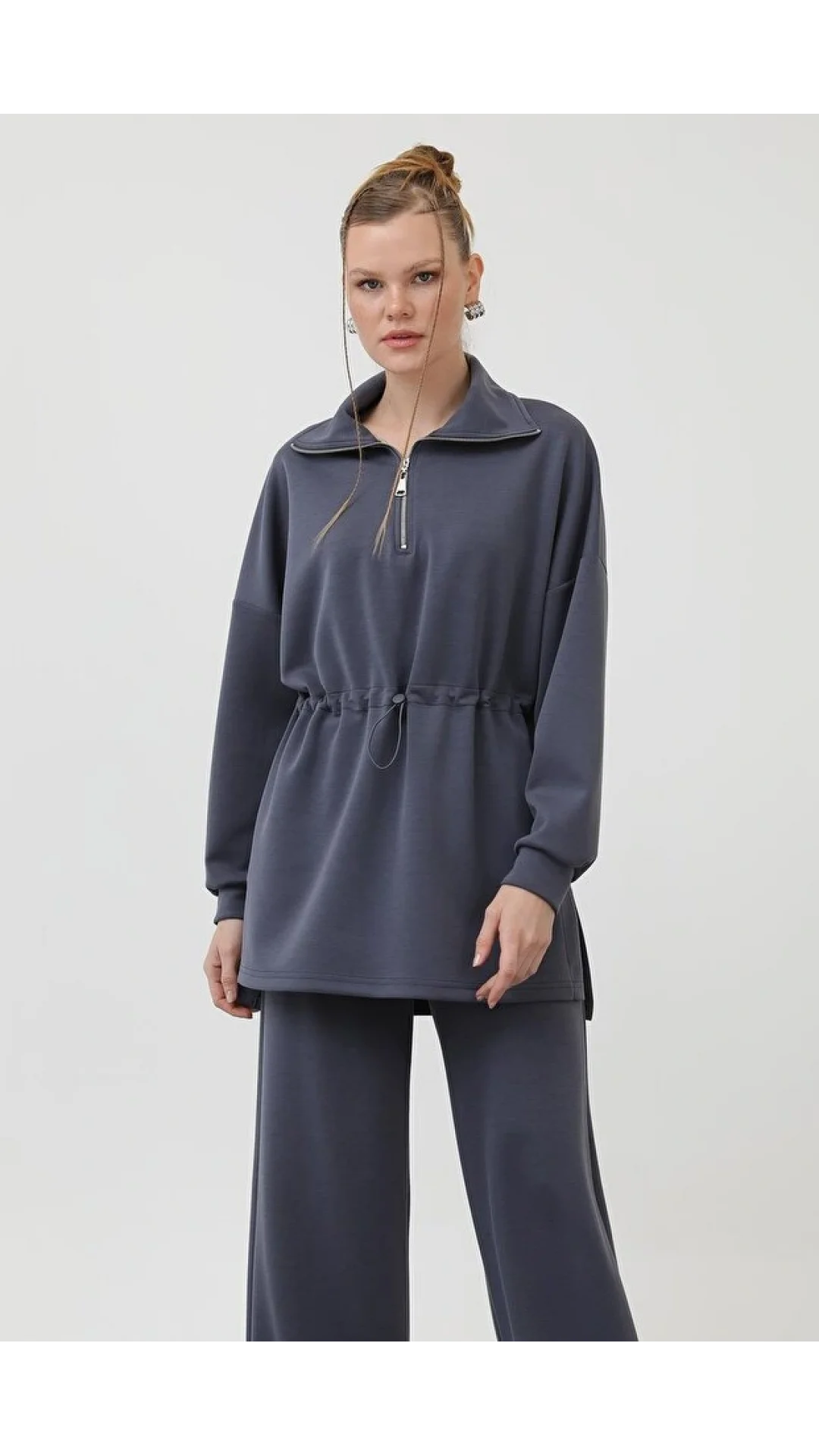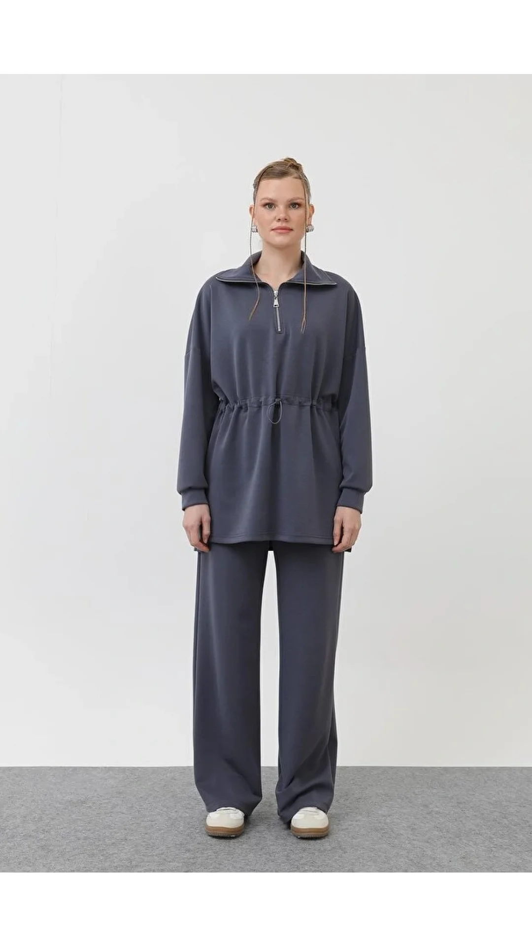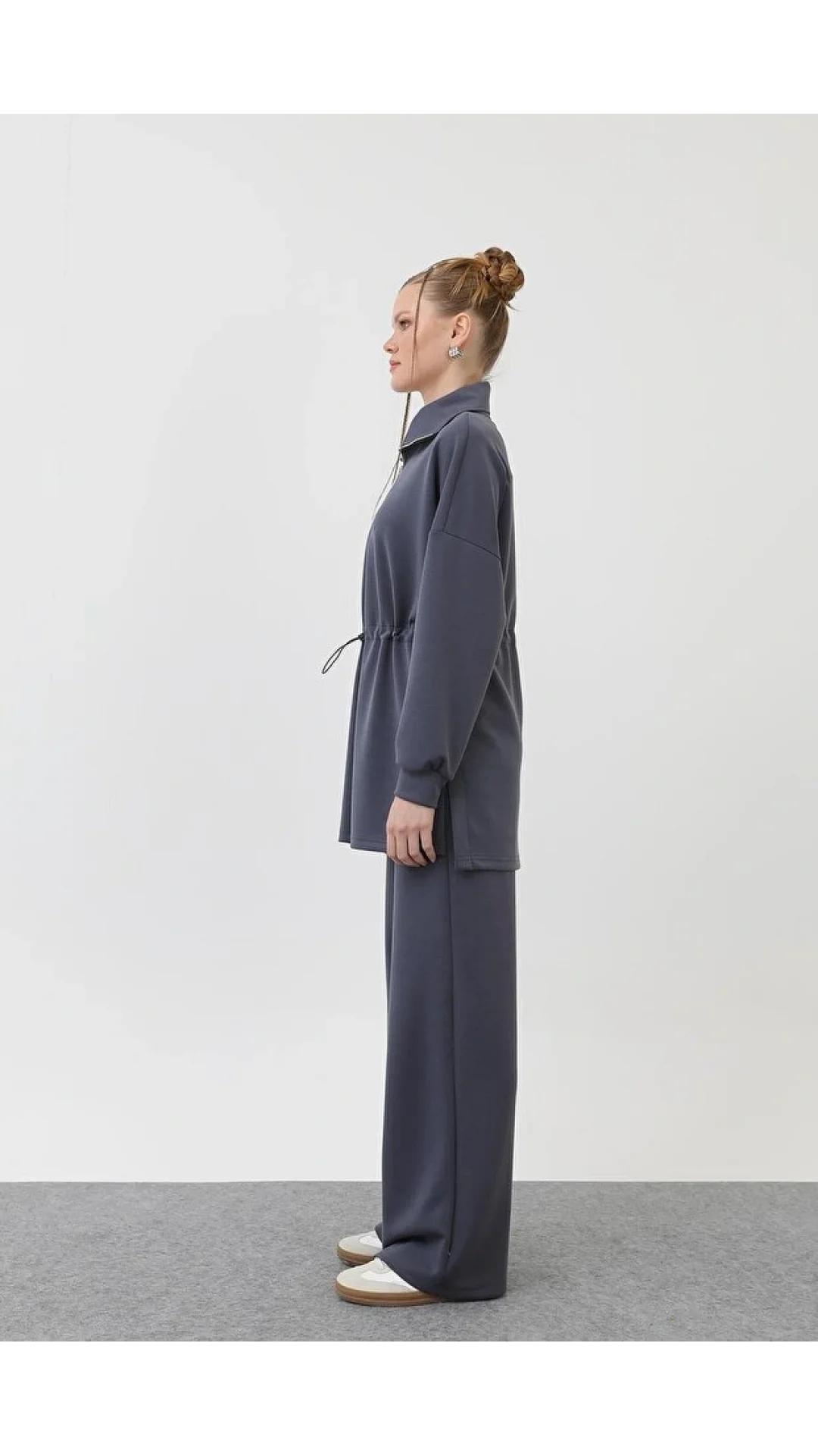 Kadın Beli Lastik Detaylı Yakası Fermuarlı Takım