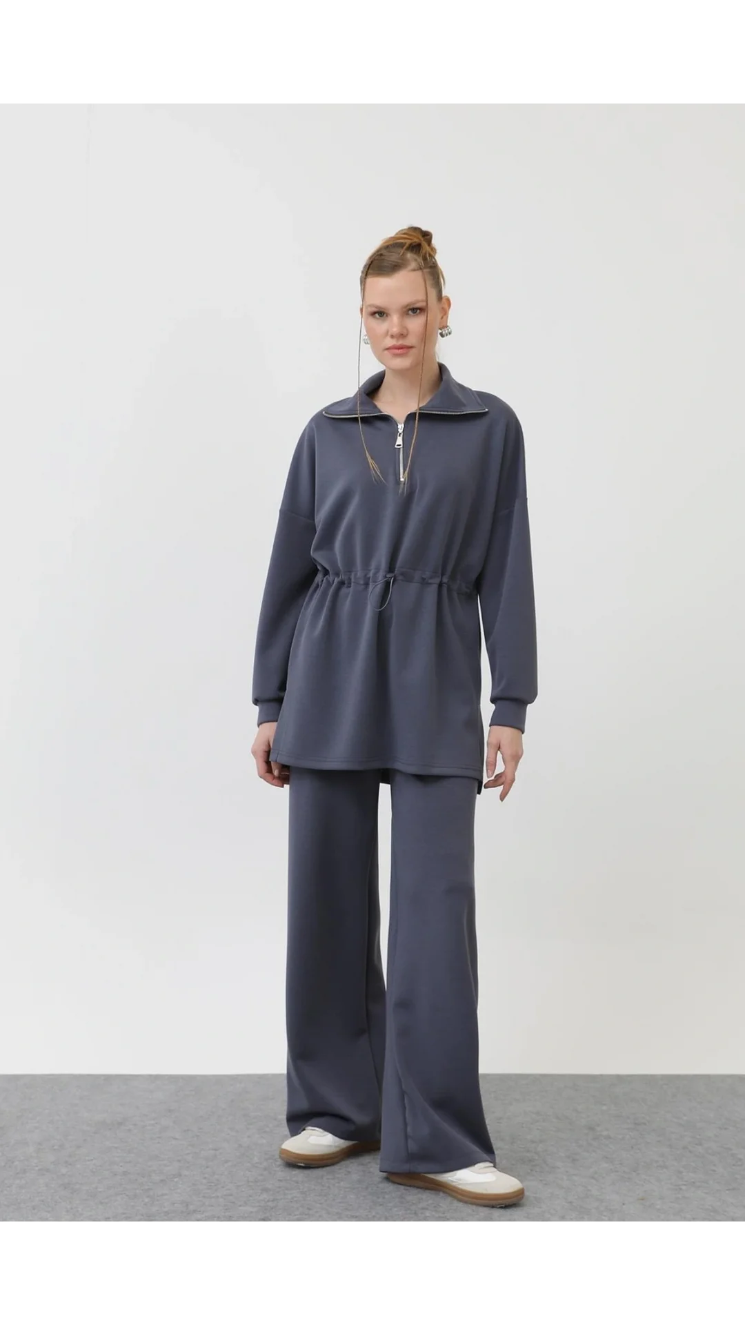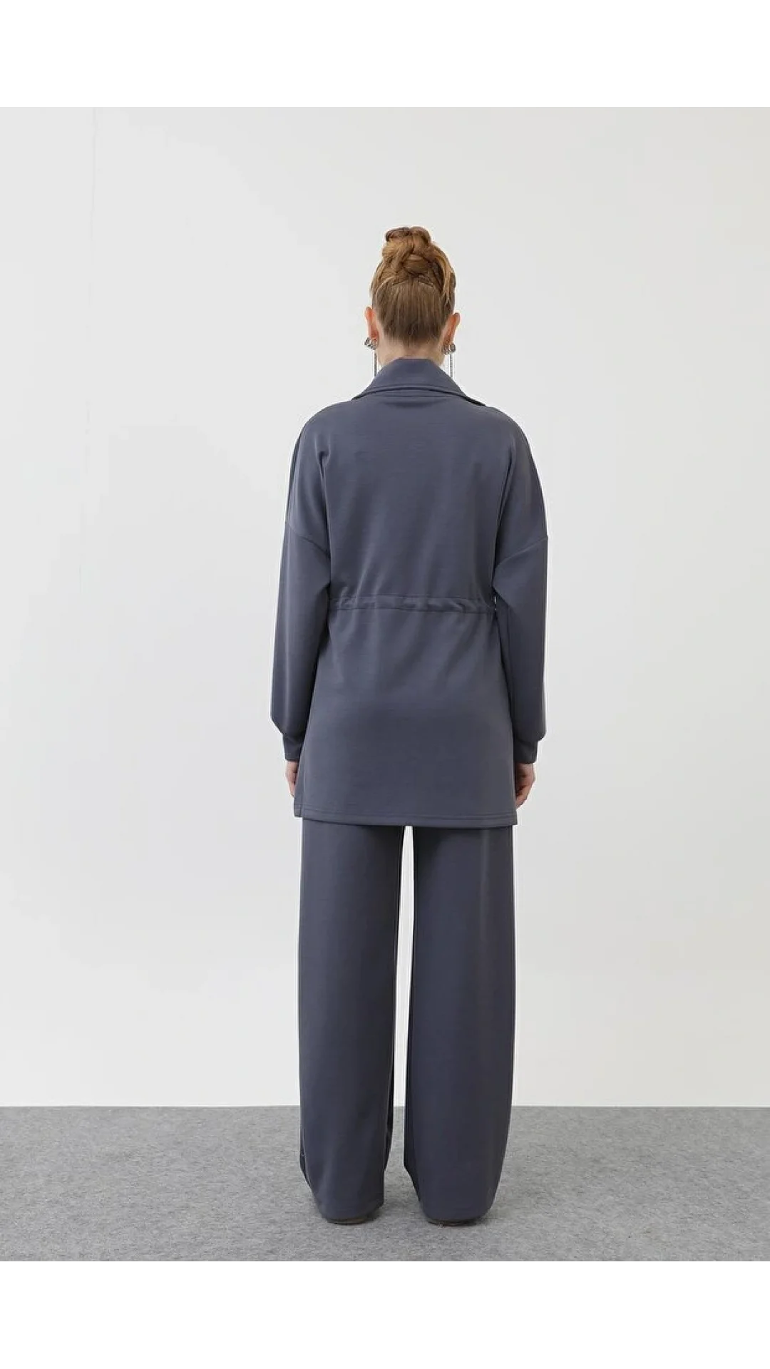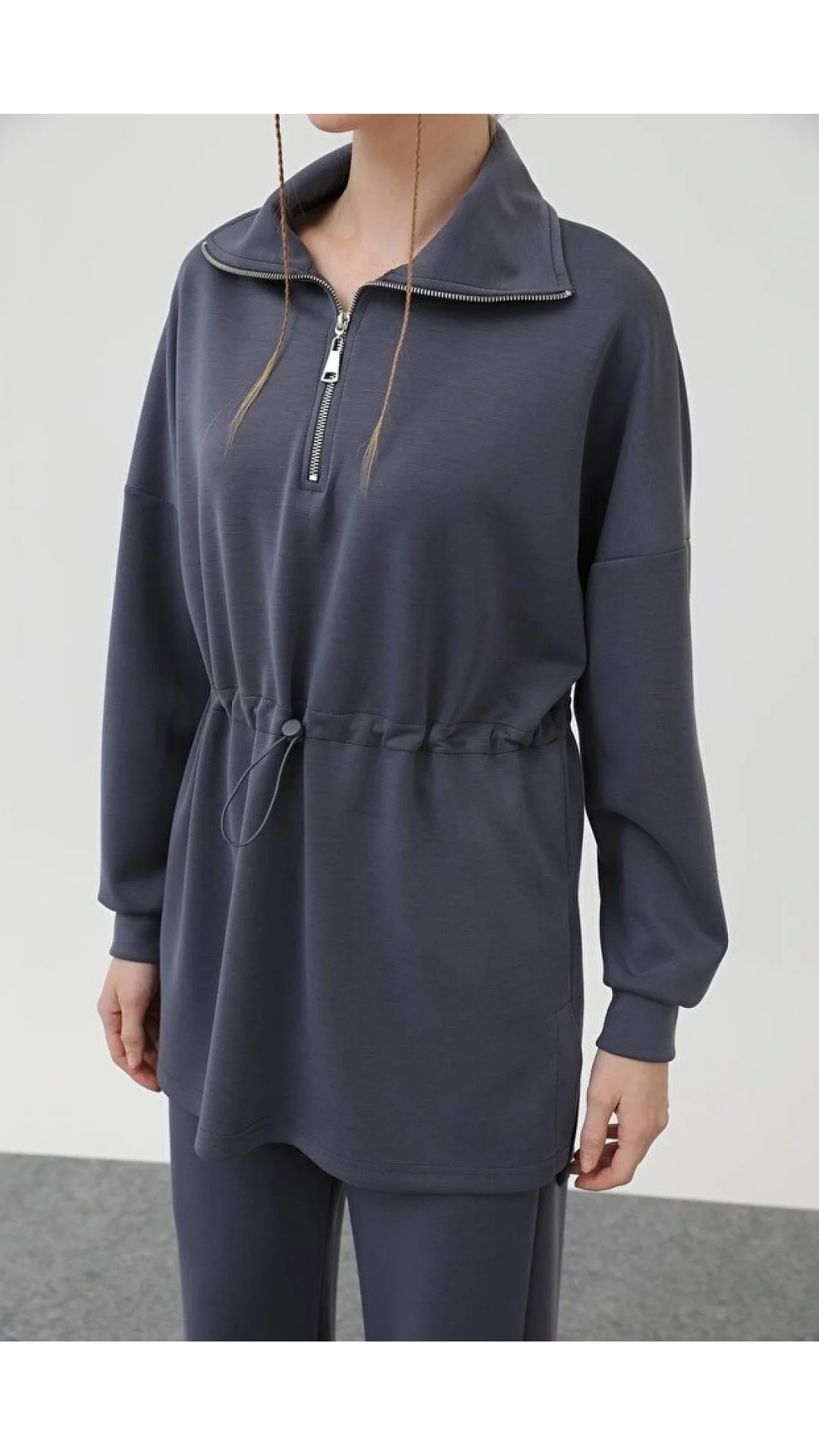 Kadın Beli Lastik Detaylı Yakası Fermuarlı Takım