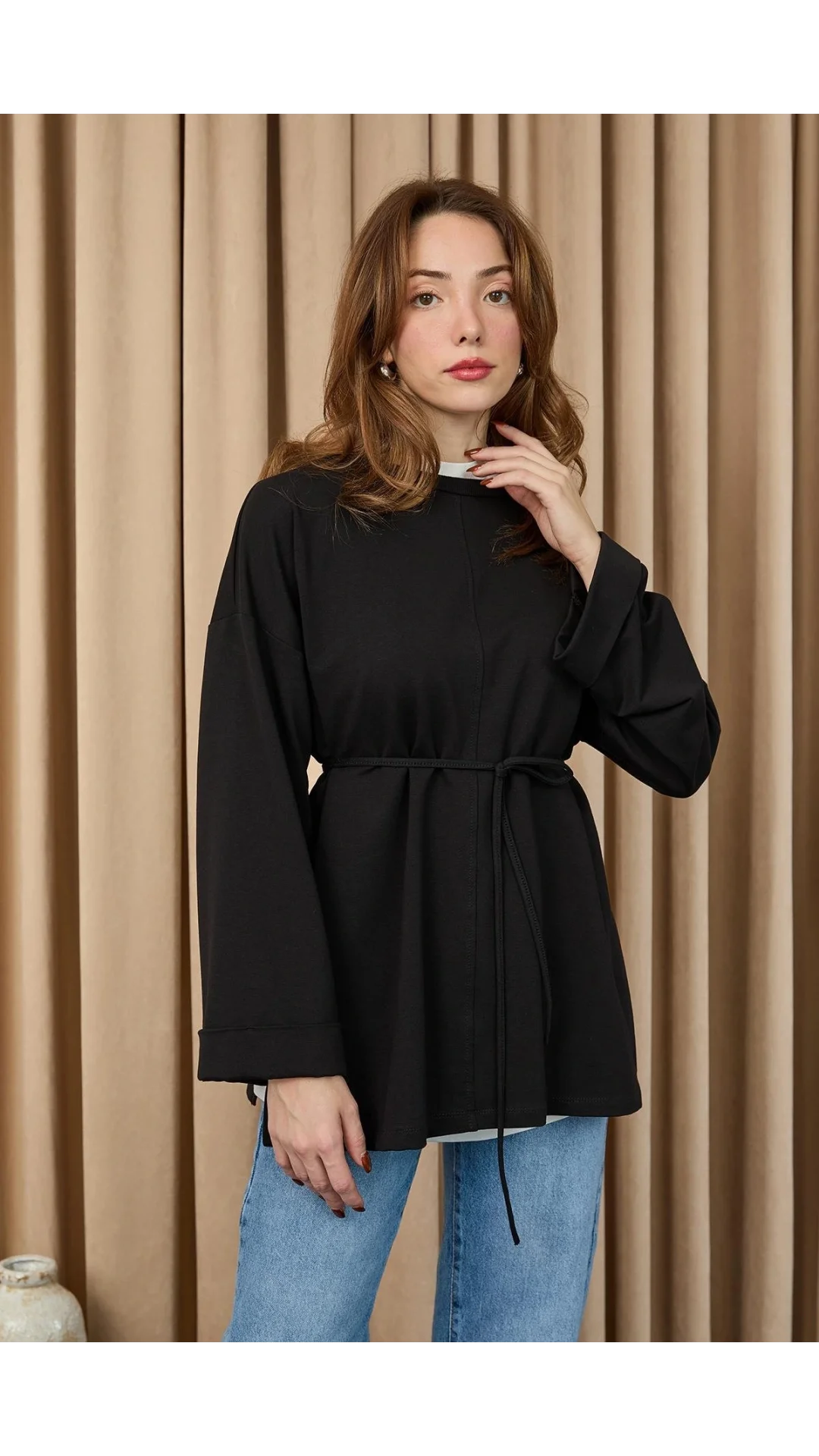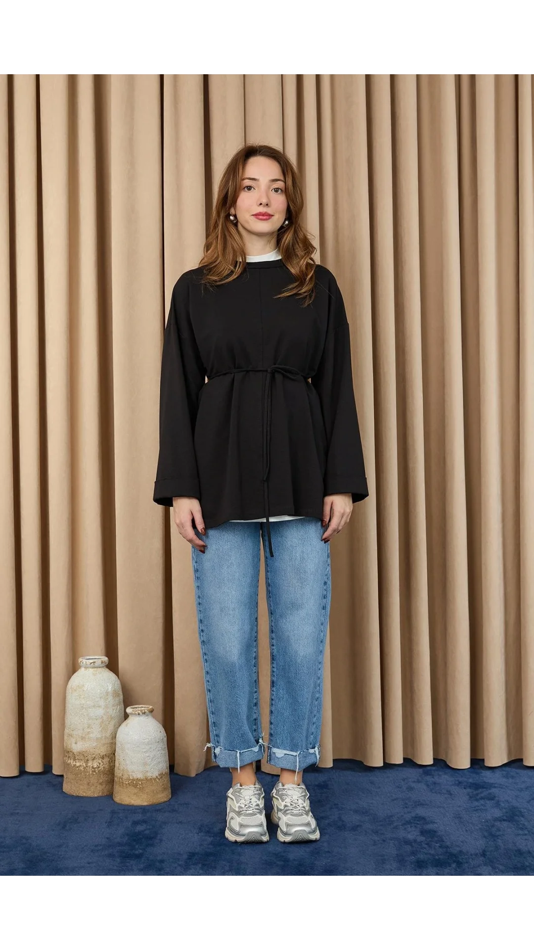 Kadın Düşük Omuz Detaylı Bağlama Aksesuarlı Bluz
