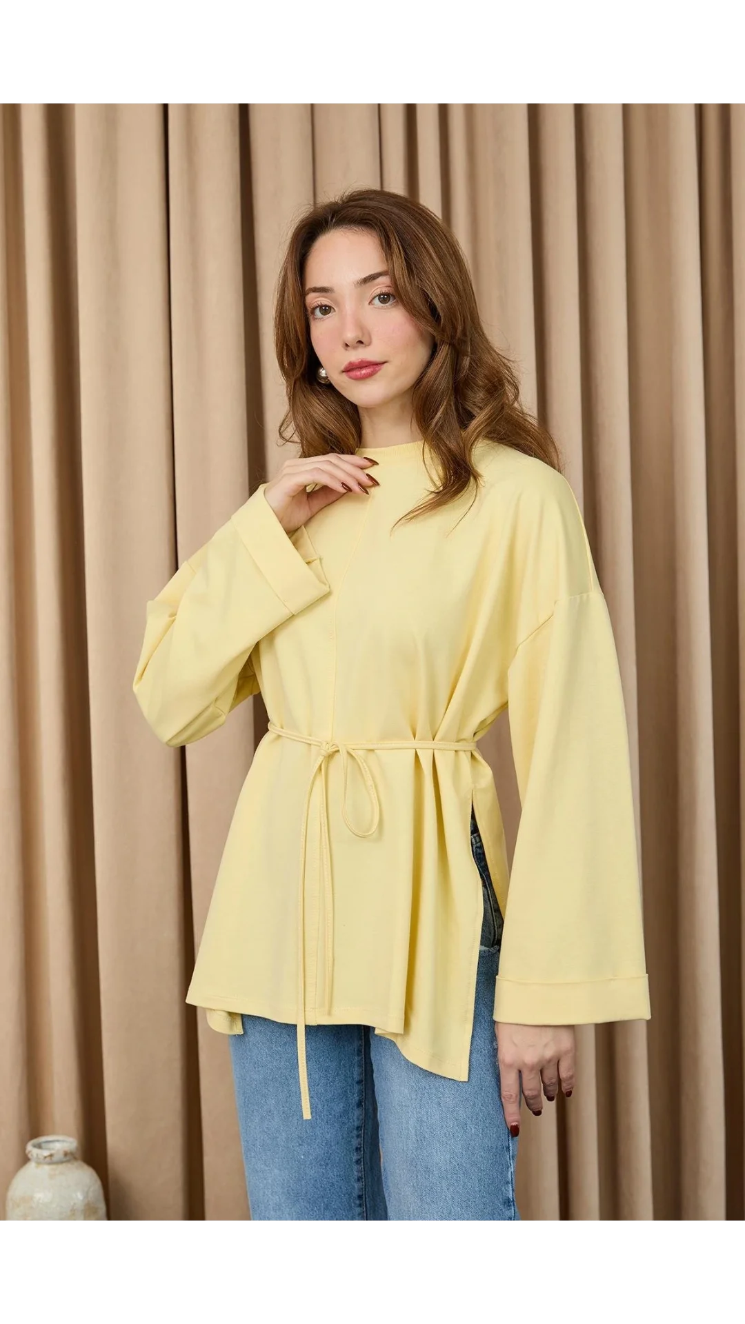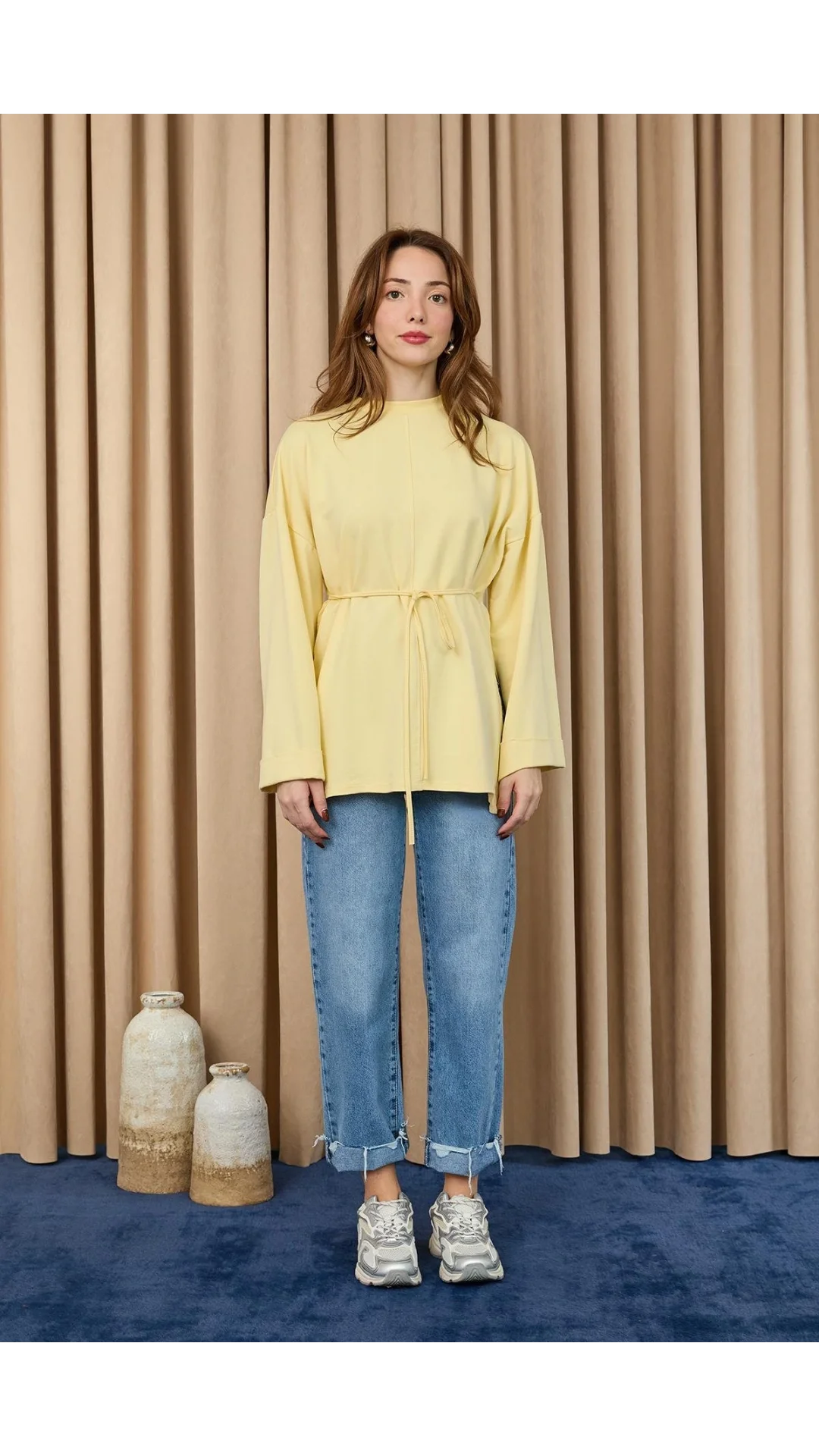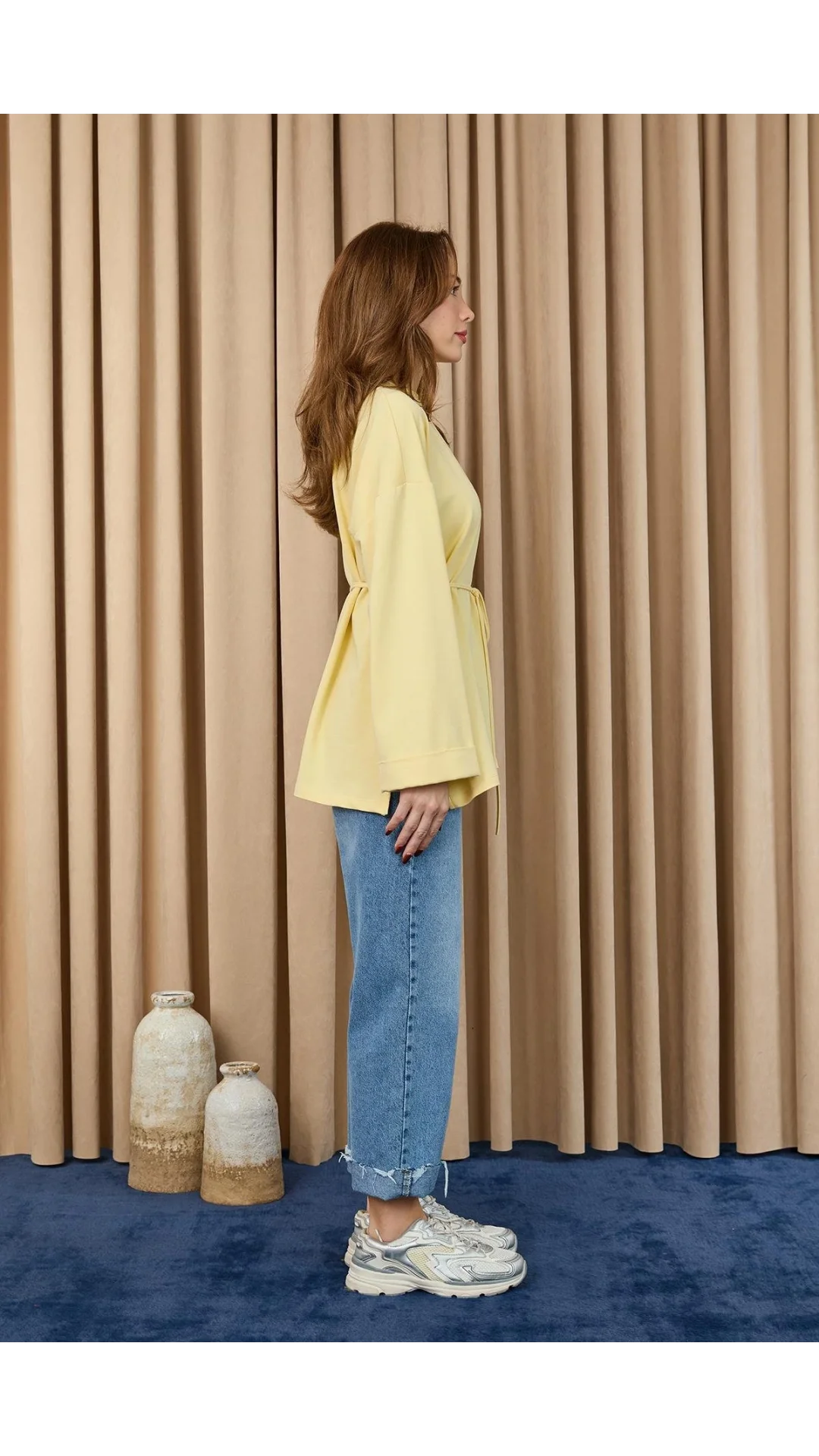 Kadın Düşük Omuz Detaylı Bağlama Aksesuarlı Bluz Sarı