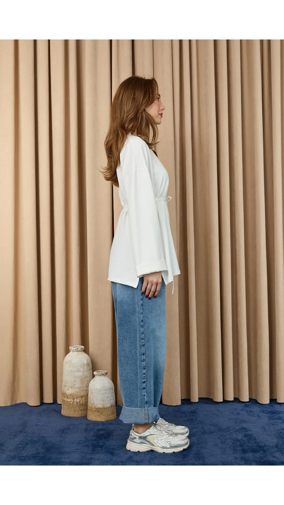 Yanları Büzgülü Denim Büstiyer-Tint