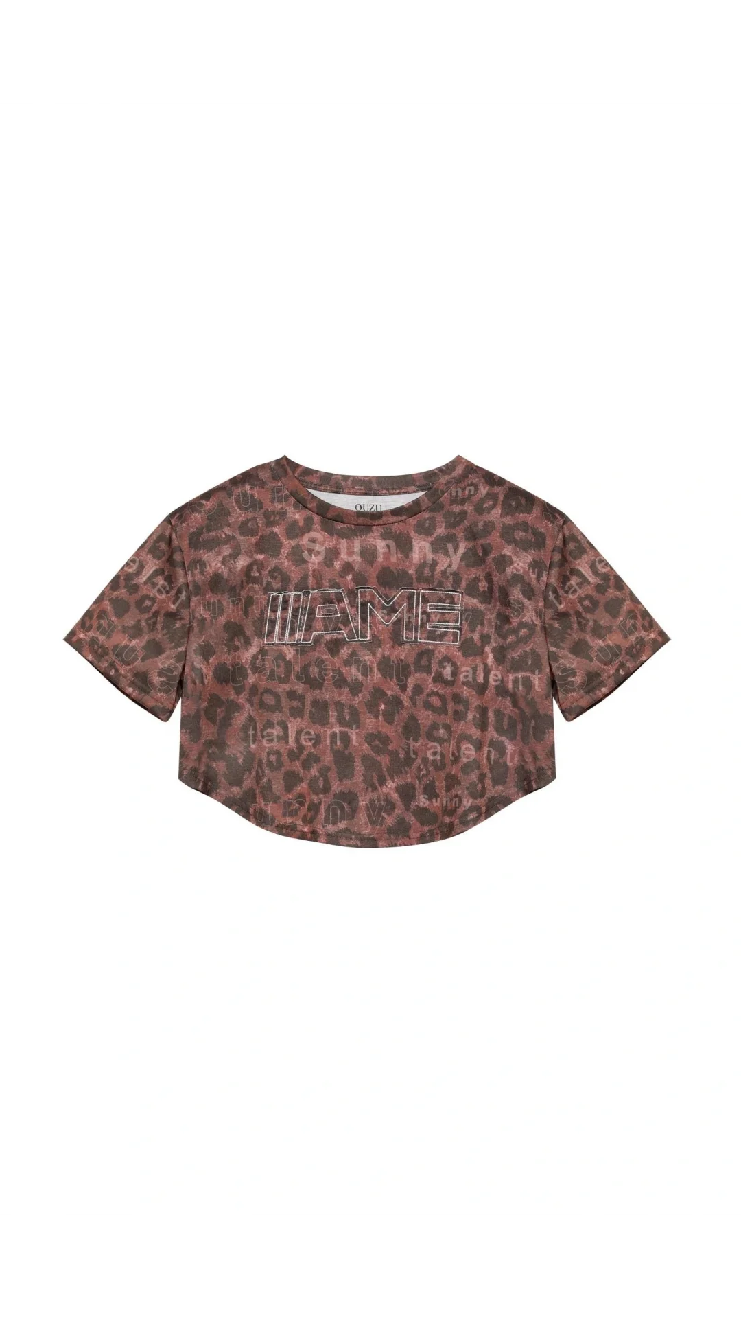 Nakış Detaylı Leopar Desenli T-shirt Kahve