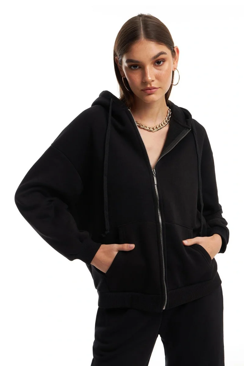 Fermuarlı Sweat Ceket Siyah