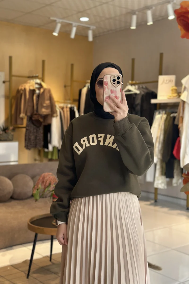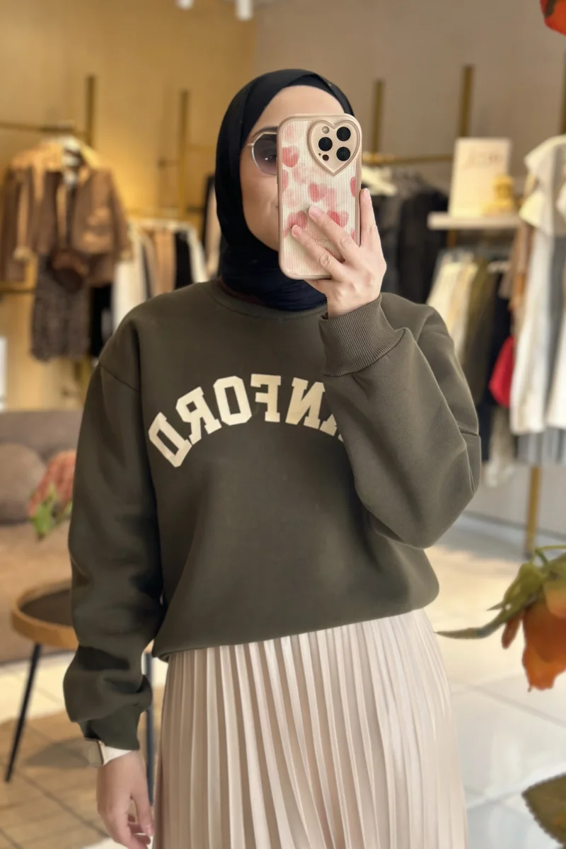 Yazı Baskılı Sweatshirt Haki