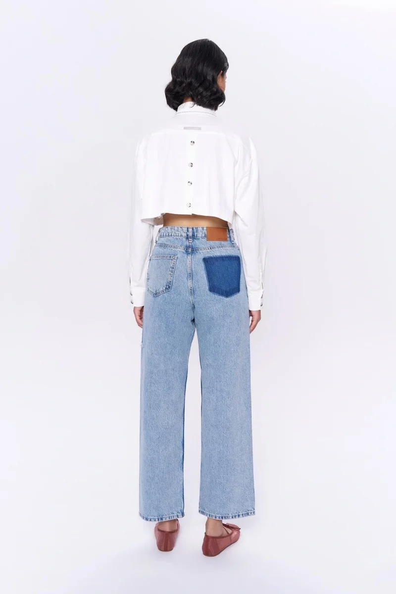 Yırtık Detaylı Bol Paça Denim Pantolon Mavi
