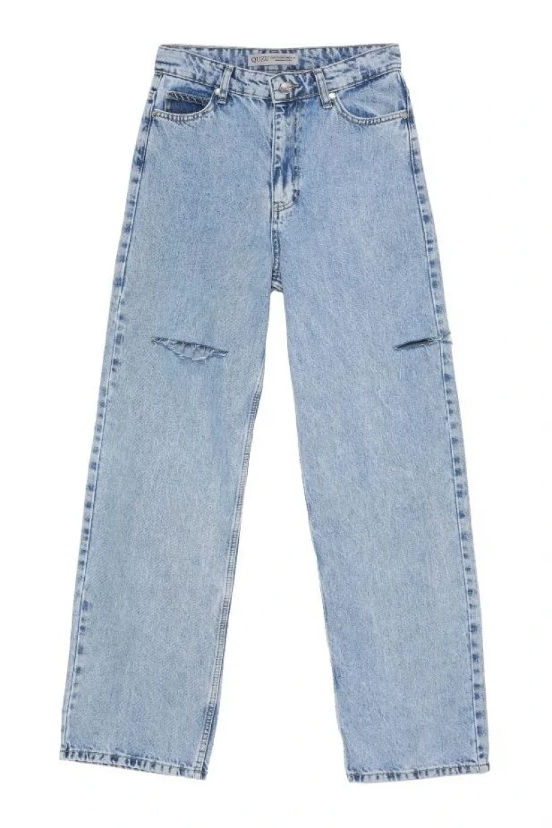 Yırtık Detaylı Denim Pantolon Buz Mavi