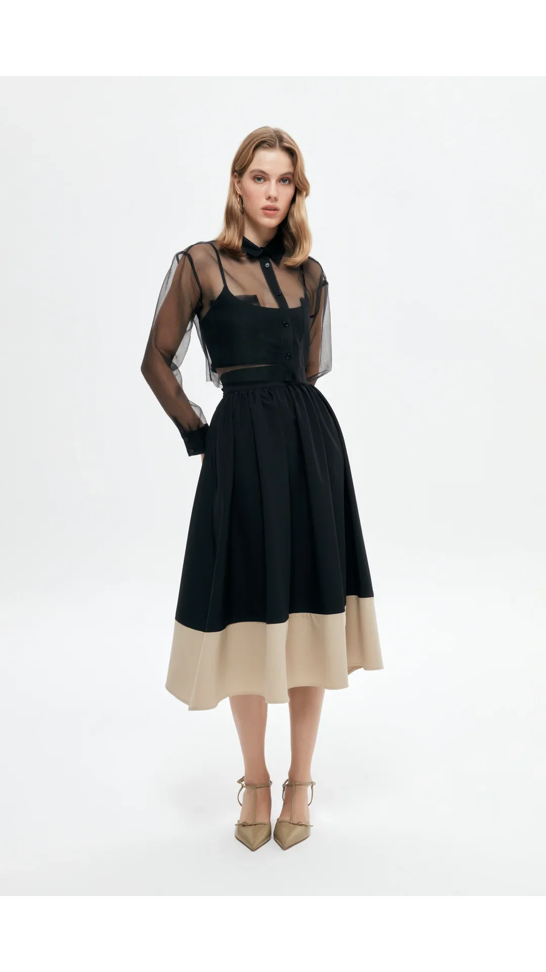 Kumaş Match Detaylı Volanlı Mini Etek Koyu Gri