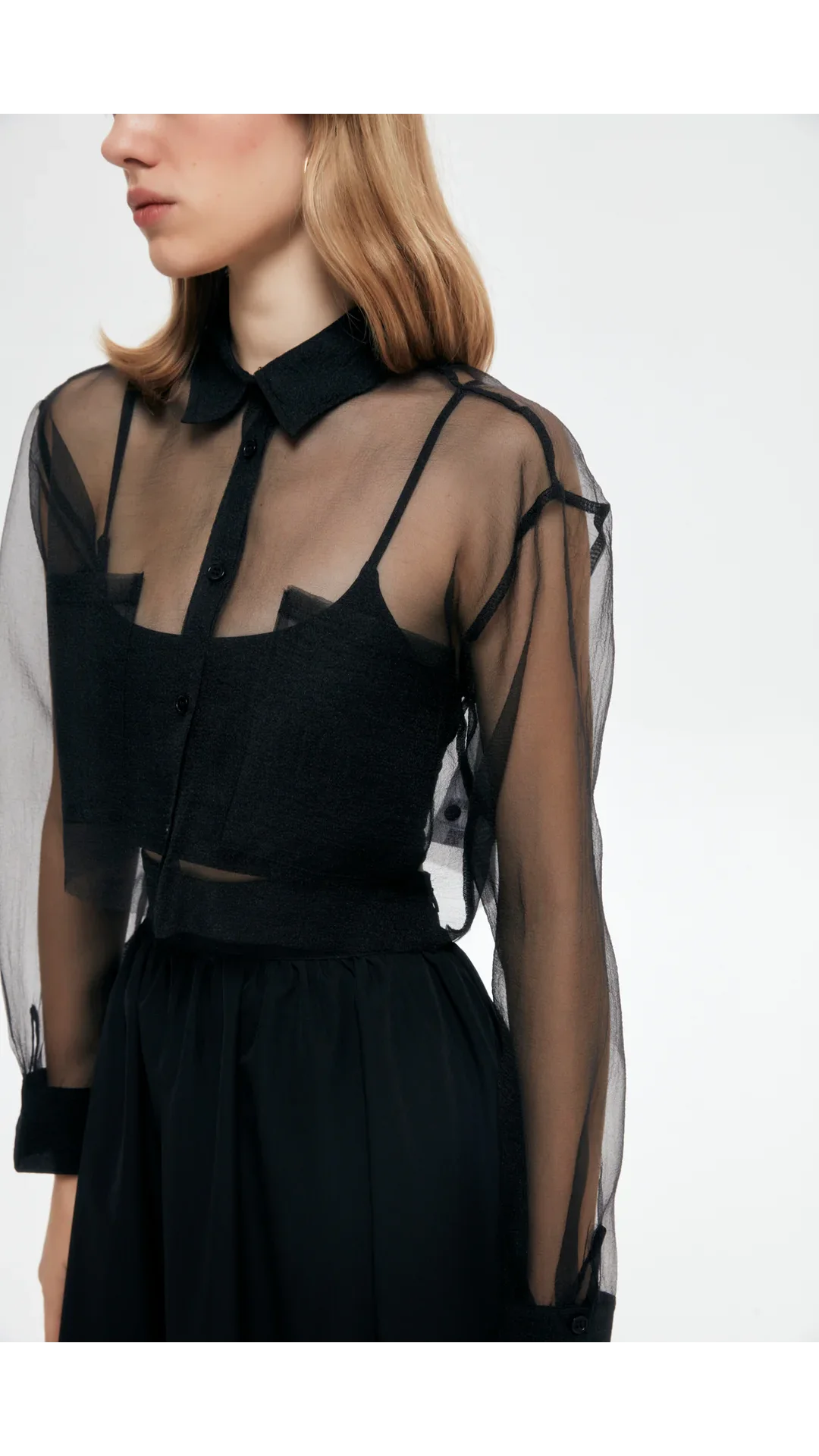 Sırtı Yazı Baskılı Kumaş Garnili Crop Ceket Gri