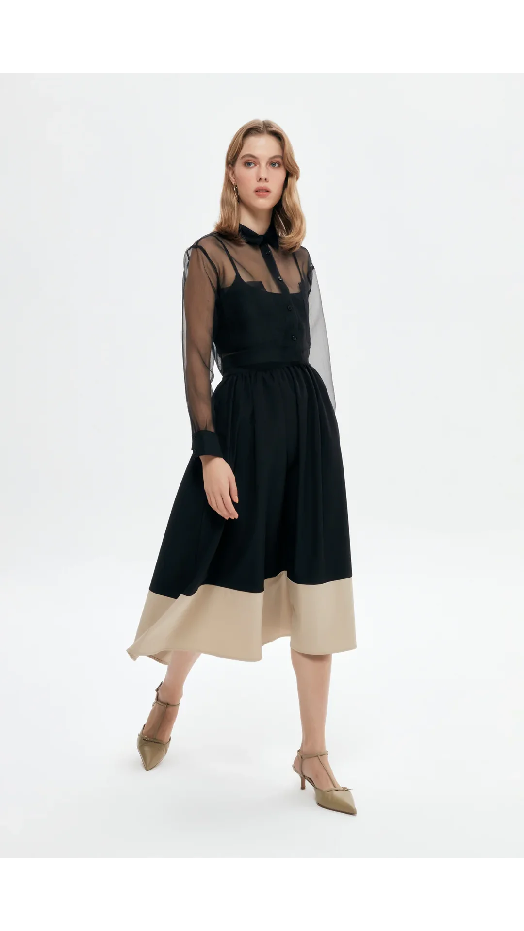 Leopar Desenli Drape Detaylı Tül Midi Elbise Kahverengi