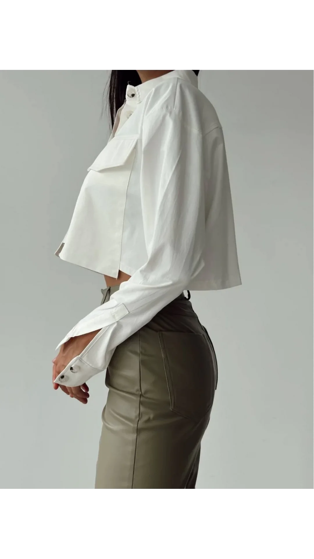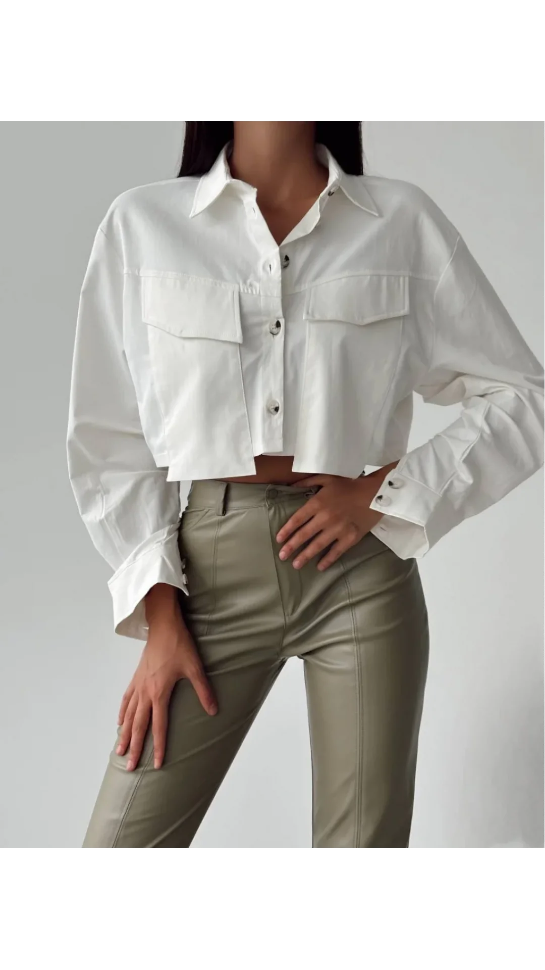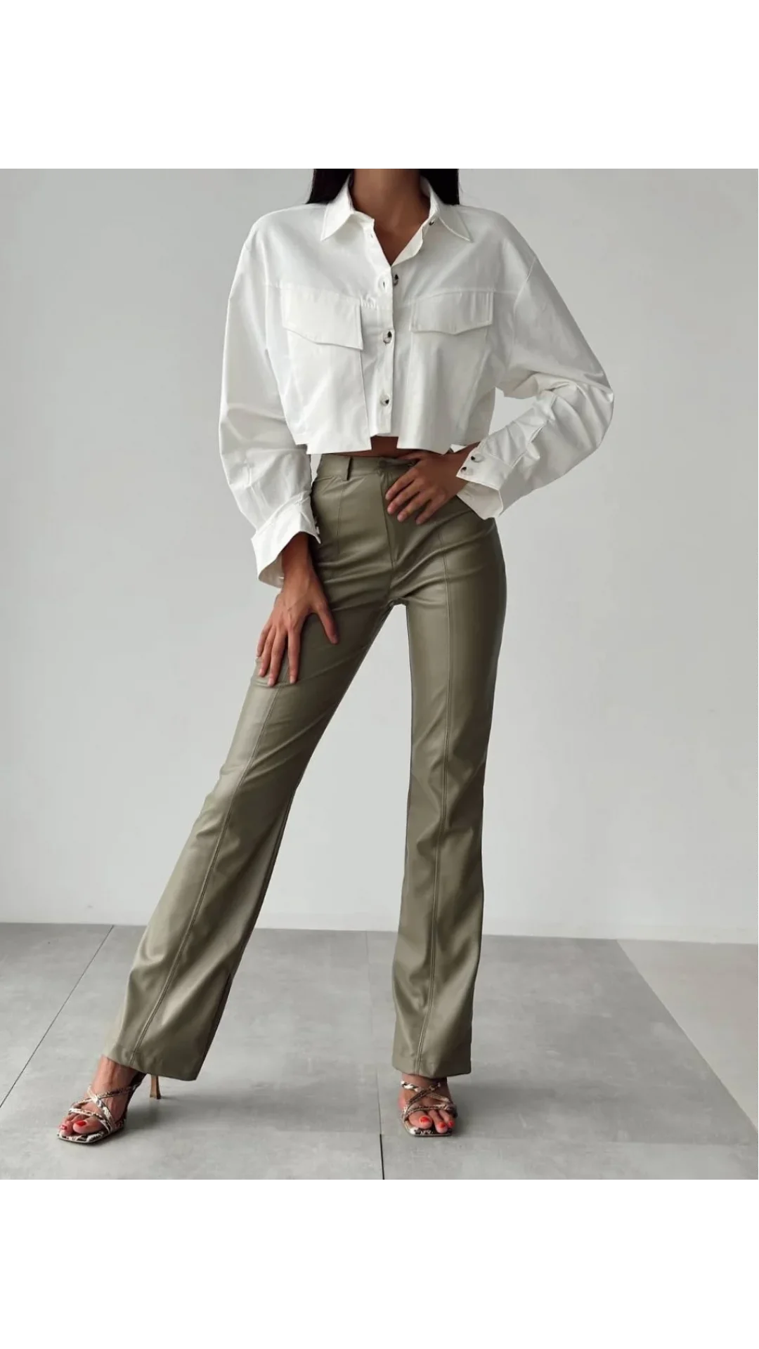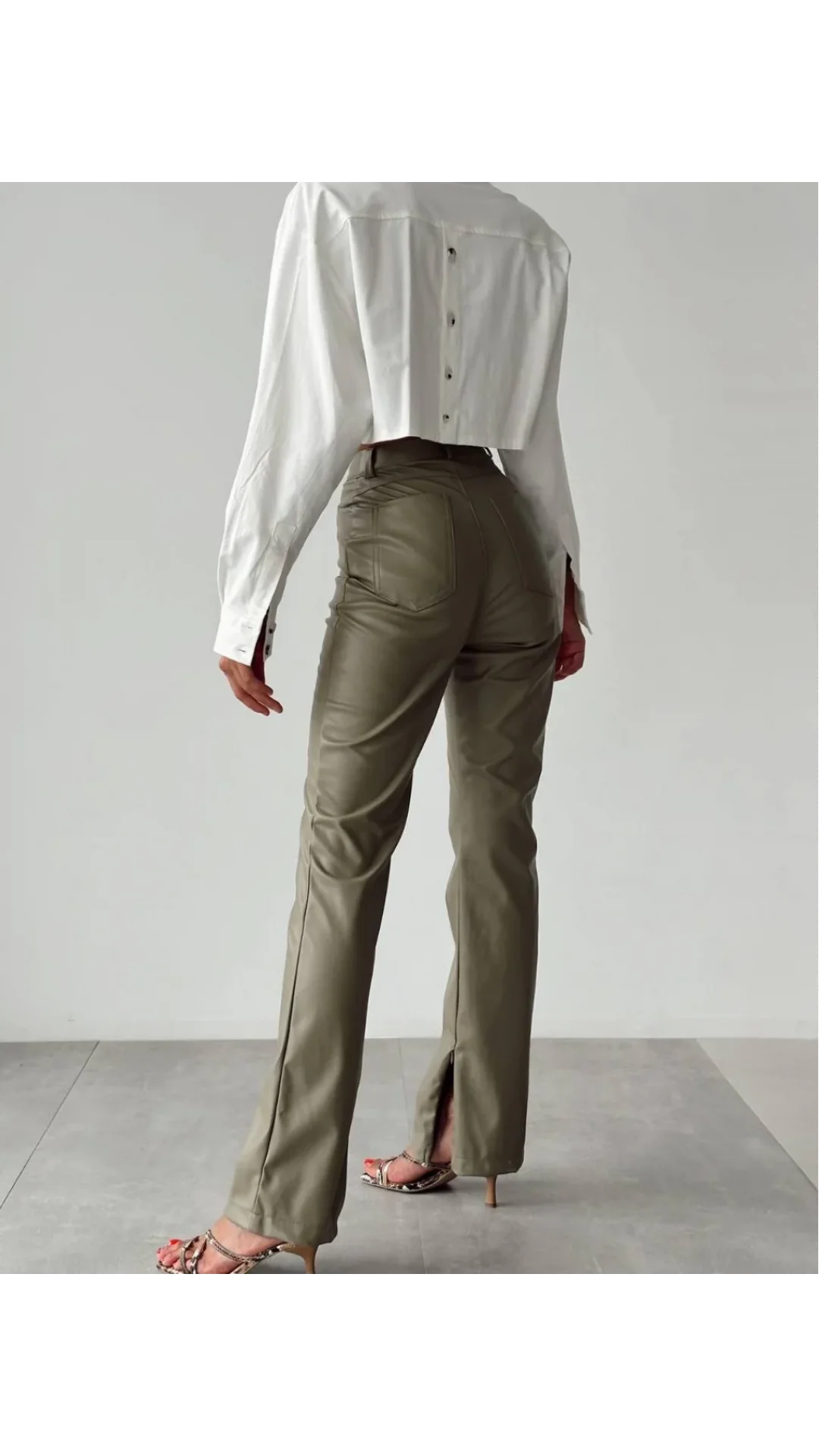 Yüksek Bel Paça Fermuarlı Deri Pantolon